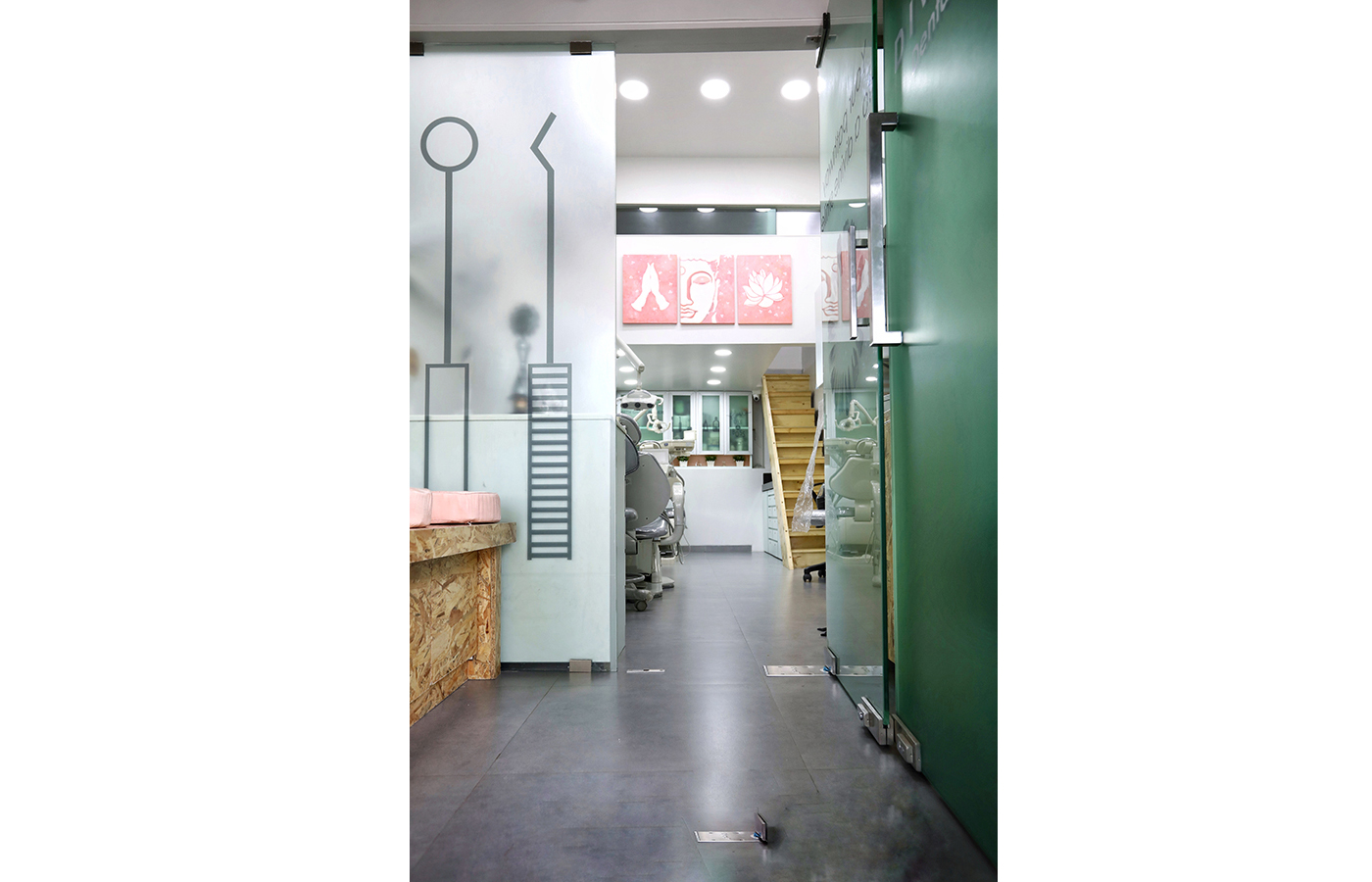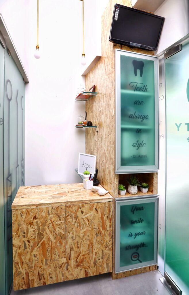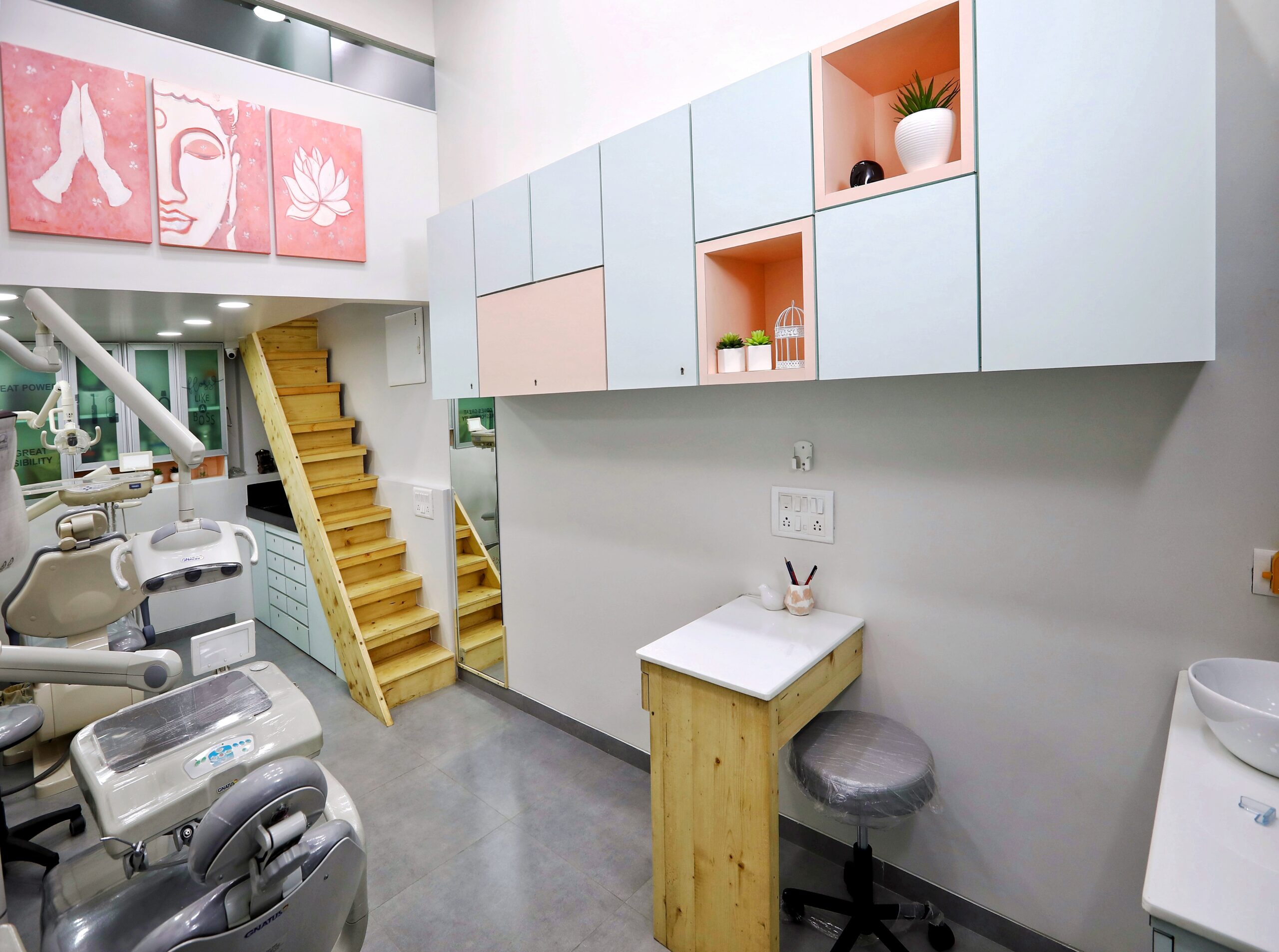 This dental clinic redefines the clinical experience with a fun yet calming personality that instantly puts visitors at ease. A soft pastel colour palette paired with warm wooden accents creates an immediate sense of lightness and warmth, making the space feel welcoming and refreshingly unlike any ordinary clinic.